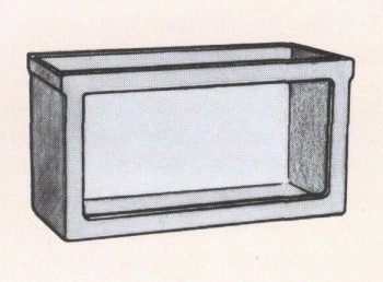Асбестоцементный аквариум может быть выполнен из цельного куска (как на рисунке); тогда его форма тяготеет к конусу. Но также можно склеить его из отдельных пластин, придав конструкции форму обычного прямоугольника.