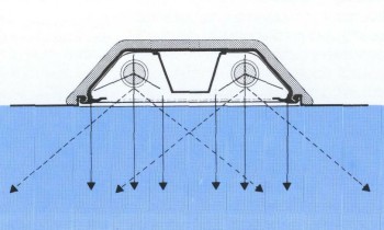 Современные водонепроницаемые закрытые лампы хороши по форме, целесообразны и снабжены подвижными рабочими створками. Распределение света в большинстве случаев оптимально. На рисунке: двухтрубная люминесцентная лампа фирмы «Juwel» (в разрезе).