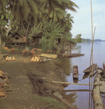 Большинство поселений на материке Новой Гвинеи стоят на воде - как вот этот поселок у реки Сепик, к востоку от Амбунти. К сожалению, засилье африканских тиляпий оттеснило и сильно сократило естественную местную фауну.