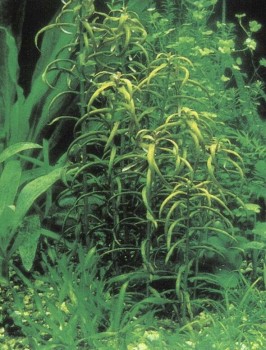Родина: От Таиланда до Вьетнама Растение отличают очень узкие и тонкие листья, слегка завивающиеся по краям. Из-за своей высоты — до 50 см — оно предназначается только для больших аквариумов. Любит богатую питательными веществами почву, оттого рекомендуется добавлять глину в смесь для грунта. Яркого освещения не нужно, как и усиленного движения воды. К показателям воды это растение тоже не предъявляет особых требований; содержать его лучше всего при температуре около 24° С. В размножении этот вид не очень активен, и отростки не следует очень уж скоро отделять от материнского растения, Как росту, так и размножению может способствовать регулярная частичная замена воды.