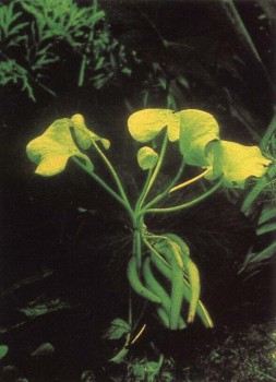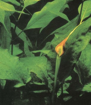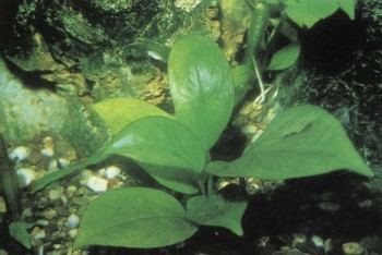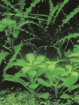 К требованиям этого растения следует отнестись внимательно. Не слишком холодная почва должна быть богата питательными веществами; диапазон температуры — от 24 до 29° С. В естественных условиях живет в тени, но в аквариуме требует сильного света. Вода должна быть богата углекислотой. Слегка волнистые листья обычно достигают высоты до 40 см. Особенно удачные экземпляры могут вырасти и на 10 см выше. Жесткость воды по возможности не должна превышать 10° а!Н, Особенность: при хорошем надлежащем уходе растение регулярно цветет, но его бутоны не всегда достигают поверхности воды и в таком случае не раскрываются (распустившиеся цветы по красоте равны орхидеям). Однако способные к прорастанию семена можно собрать и с закрытых цветков. Часто растению приносят вред улитки.
