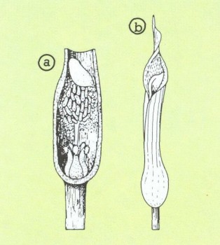 Cryptocoryne affinis: а) камера и b) открытая завязь