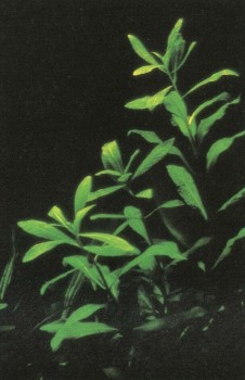 Окраска листьев этого тонколист-ного стеблевого растения тоже зависит от освещенности аквариума и интенсивности света. Зеленые, а у молодых верхних побегов слегка красноватые листочки изменяются в аквариуме в зависимости от окружающей среды. Ротала — растение, подходящее для заднего плана композиции, и ее сажают группами в тех местах, которые полностью освещены. Это растение довольно жесткое, и оно достаточно медленно увеличивается в размерах, так что не надо опасаться: оно не скоро разрастется настолько, чтобы занять половину аквариума. Если его стебли вытянутся до самой поверхности воды, то все равно выше нее они не поднимутся, а лягут на водное зеркало.