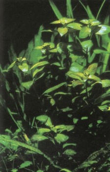 Это растение американского происхождения с течением времени распространилось и в некоторых областях Южной Европы. Его с удовольствием используют аквариумисты для определенного типа домашних водоемов. Причиной тому в первую очередь необычный цвет листьев, их красная нижняя сторона. Эта окраска зависит от света: при скудном освещении она может скоро поблекнуть. Стебель растения, случается, достигает 60 см в длину. При этом, правда, оно нуждается в более питательной почве, нежели ему обычно предлагают. Когда температура не очень высока, то есть не намного выше 23° С, людвигия прекрасно развивается. Если она начнет сбрасывать нижние листья, надо вынуть ее из грунта, срезать нижний конец и посадить снова.