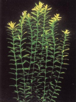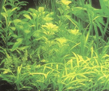 Группа 4: Наиболее активные производители кислорода; некоторые из них (кабомба) требуют очень мягкой воды и интенсивного освещения. Служат для нереста и как укрытия. Поскольку корни им нужны только как якорь, сажать их надо группами и прикреплять к грунту. Размножать черенками.
