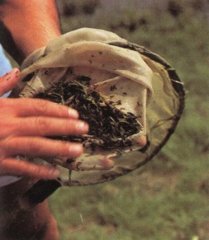 «Черный мотыль» ловится чаше всего возле прибрежной растительности. Определить, водятся ли здесь нужные личинки, можно только после нескольких попыток: сачок нужно опустить в воду наполовину и тянуть его по воде.