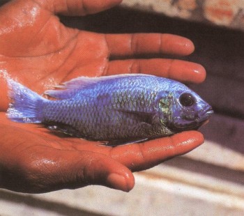 Copadichromisjacksoni, вид из группы «Утака»; на фотографии — только что пойманная живая рыба.