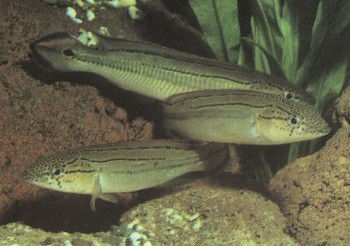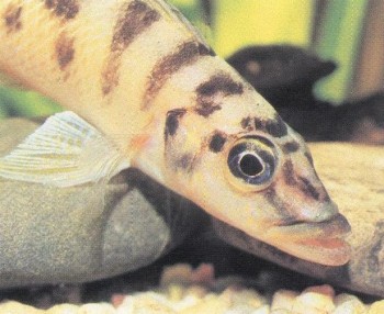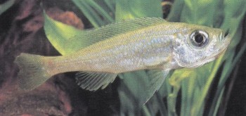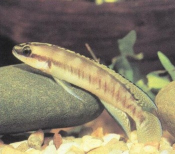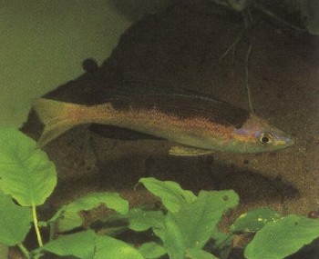 Perissodus microlepis, самец. Пожиратель чешуи из озера Танганьика. Форма тела удлиненная.