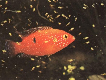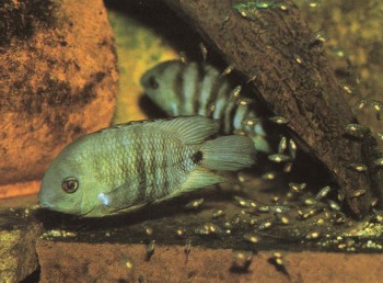 Представители семейства Цихловые в ходе эволюционного развития выработали разнообразные способы размножения и ухода за приплодом. На этом рисунке три самых распространенных способа: цихлазома Меека (Cichlasoma meeki) свободно выметывает икру на донный субстрат; «млекопитающий» дискус с мальками; инкубирующая икру во рту мозамбикская тиляпия (Oreochromis mossambicus).