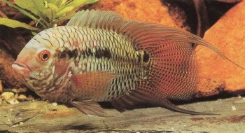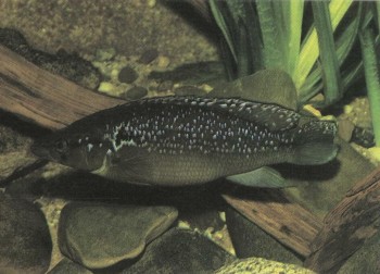 Haplotaxodon microlepis, самец. Представителей этого вида всегда притягивает водное зеркало.